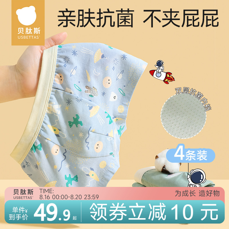【产品名称:贝肽斯儿童内裤男童A类抗菌三四角短裤中小女童纯棉亲肤不夹屁屁】