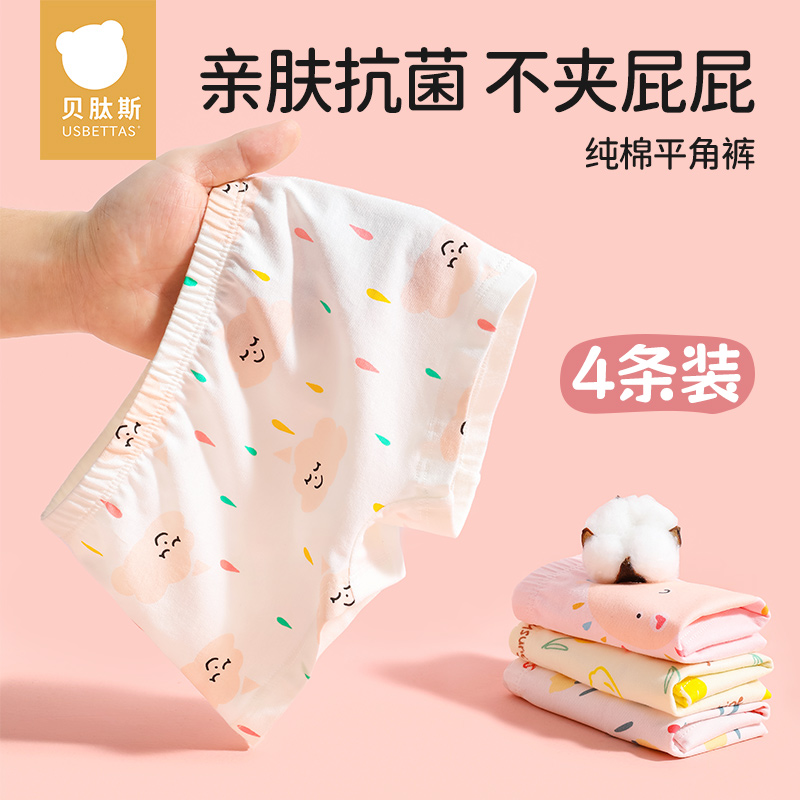 【产品名称:贝肽斯儿童内裤男童女童四角短裤抗菌纯棉亲肤中小童女宝宝不夹PP】