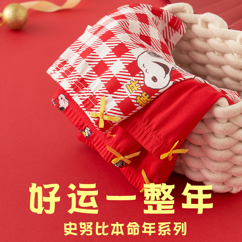 【产品名称:史努比红色女童内裤本命年纯棉短裤儿童中大童12女孩13岁兔年平角】