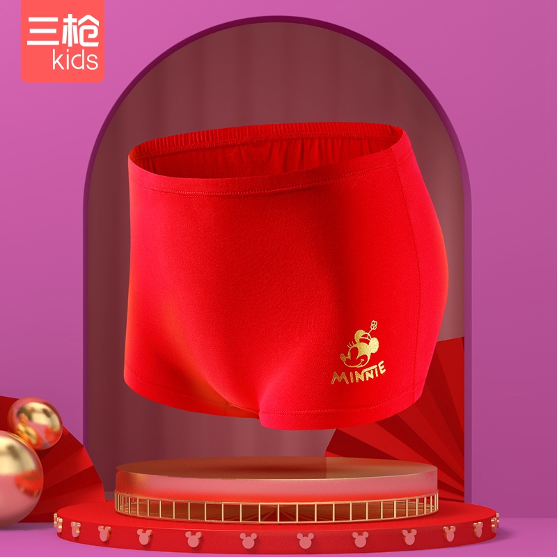 【产品名称:三枪儿童大红内裤迪士尼男童平角裤女童三角裤全棉节庆本命年短裤】