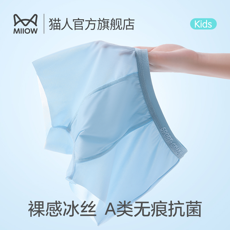 【产品名称:猫人儿童内裤夏季冰丝凉感男孩四角短裤无痕中大童青少年平角裤头】
