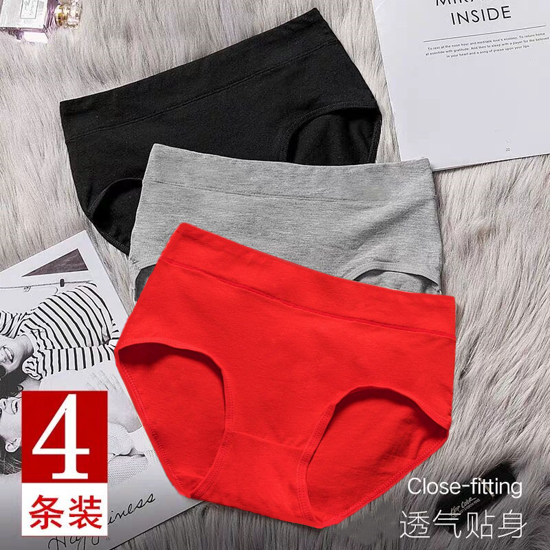 【产品名称:本命年中腰纯棉内裤女全棉大红色100%女士女生抗舒适菌三角裤属牛】