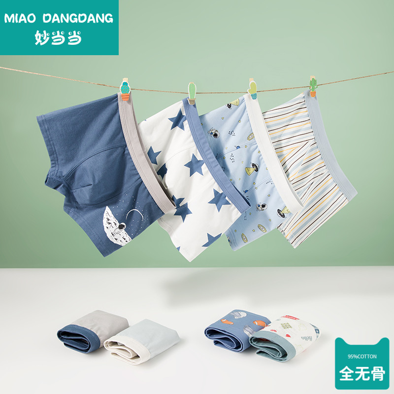 妙当当男童内裤平角纯棉无骨中大童宝宝小童男孩儿童四角短裤a类