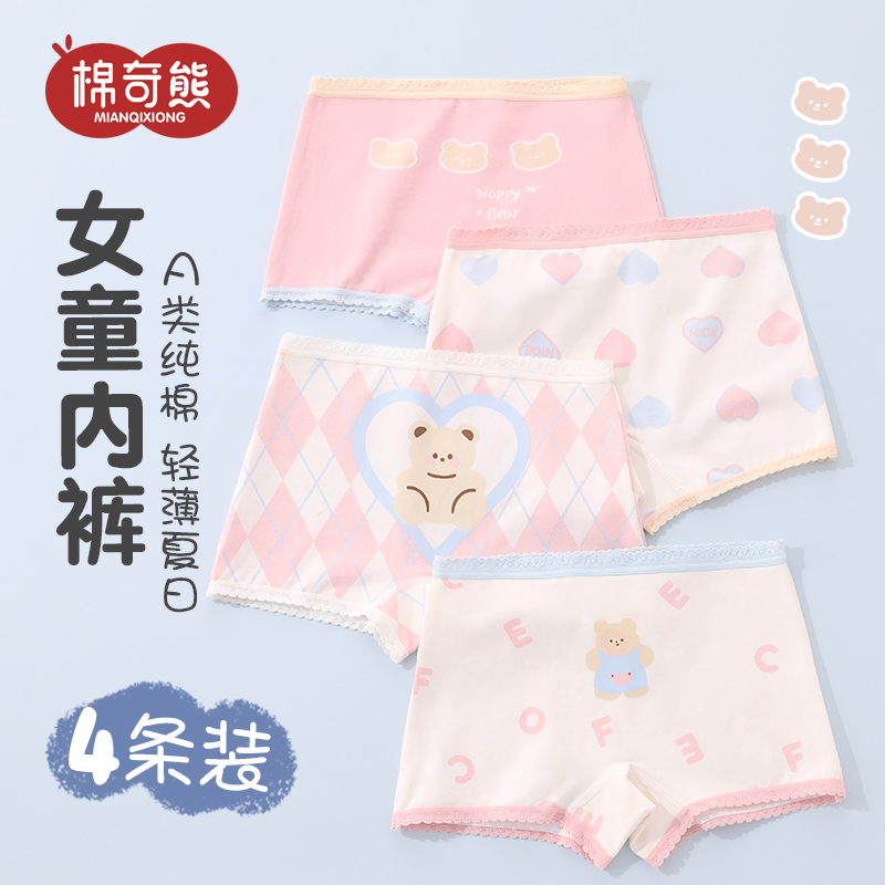 【产品名称:女童内裤夏季薄款儿童纯棉平角裤女孩宝宝100%不夹屁屁全棉四角裤】