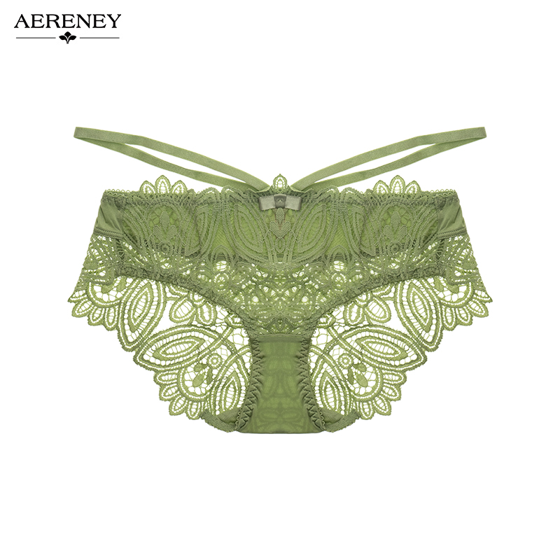 【产品名称:AERENEY性感内裤女士法式蕾丝绑带无痕薄款舒适透气中低腰平角裤】