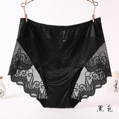 【产品名称:透气冰丝高腰加肥加大码莫代尔蕾丝性感胖mm200斤内裤女士三角裤】