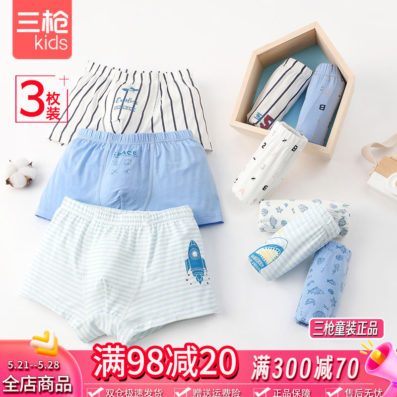 【产品名称:[3枚装]三枪儿童垂顺莫代尔柔软A类男四平角学生优质打底内裤裤头】