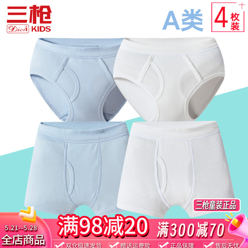 【产品名称:[3/4条装]三枪儿童纯棉男童三角平角内裤纯棉全棉白色透气A类裤头】