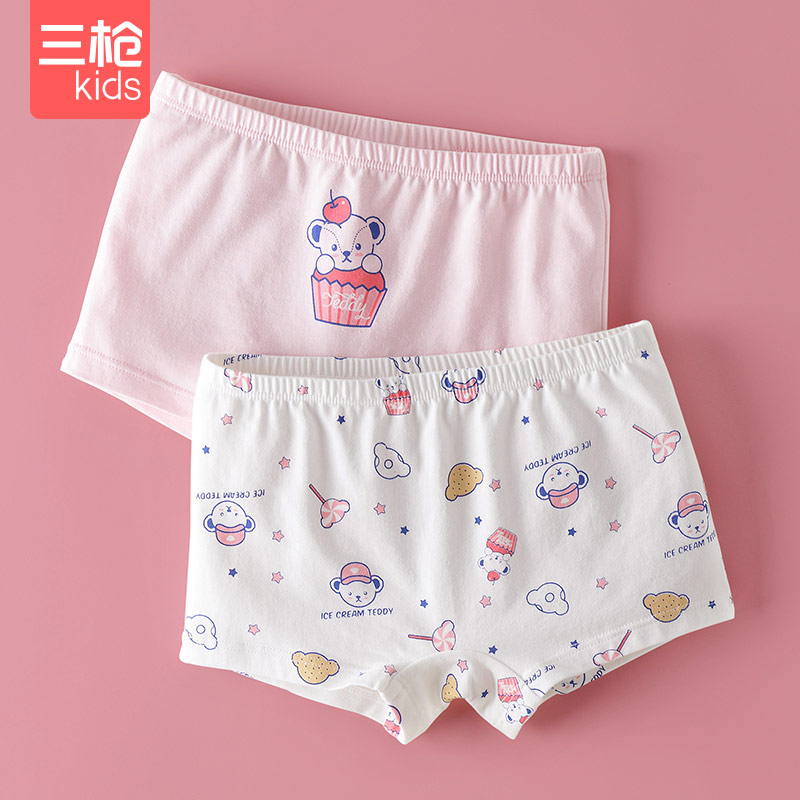 【产品名称:三枪女童内裤女孩子内衣内裤舒肤弹力棉女童平脚裤(两枚装)】