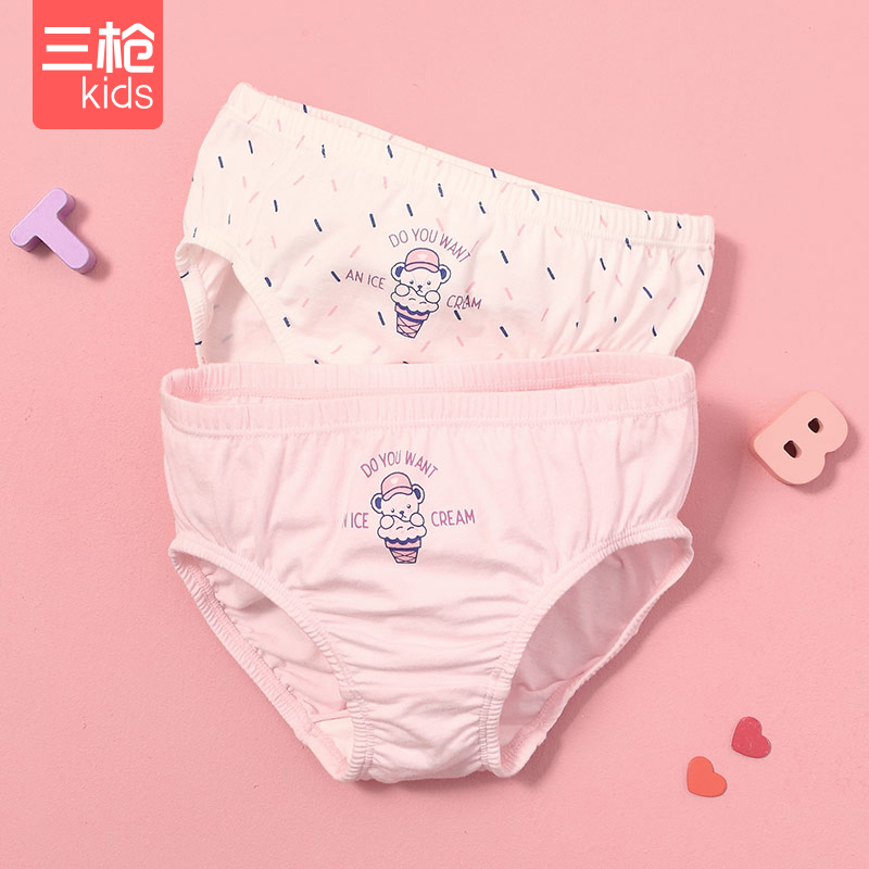 【产品名称:三枪儿童内裤女童中大童泰迪熊舒肤弹力棉三角裤【两枚装不夹pp】】