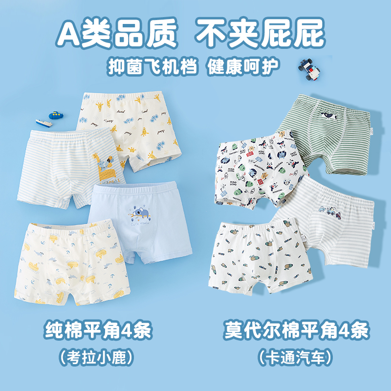 8条装男童内裤纯棉平角短裤小童四角男孩莫代尔儿童100%不夹屁