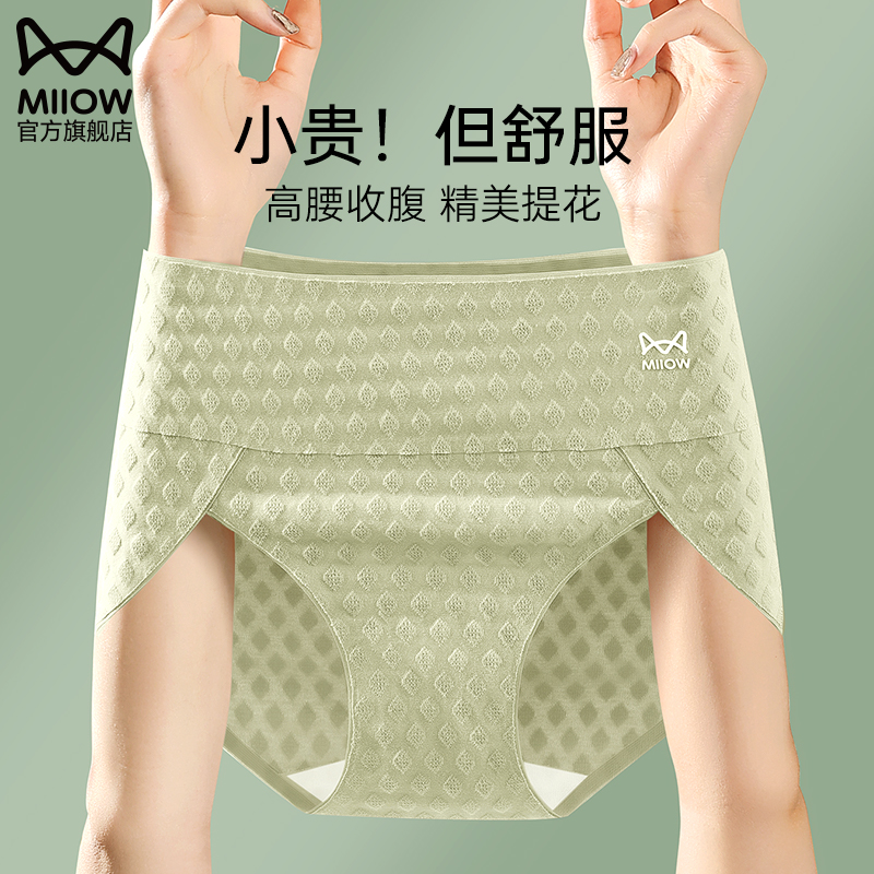【产品名称:猫人收腹内裤女士纯棉全棉抗菌裆女生夏季高腰无痕透气三角短裤头】