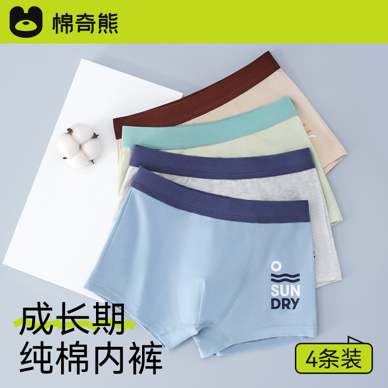 【产品名称:儿童内裤青少年平角纯棉底裤学生发育期四角裤大童高中生男生短裤】