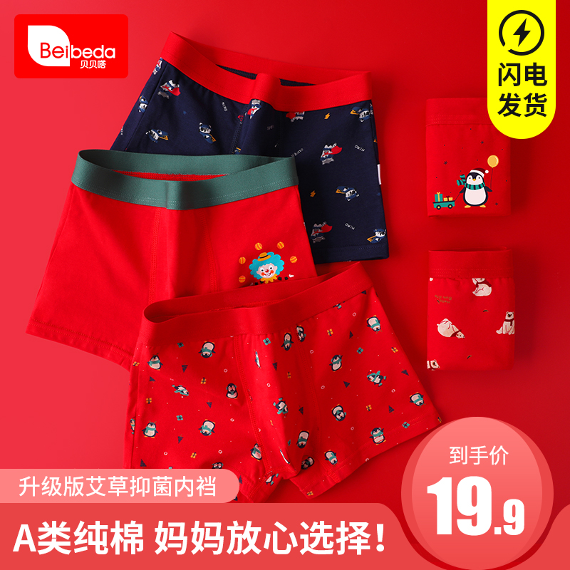 【产品名称:儿童本命年内裤男童红色纯棉平角四角12岁虎年全棉中大童100%短裤】