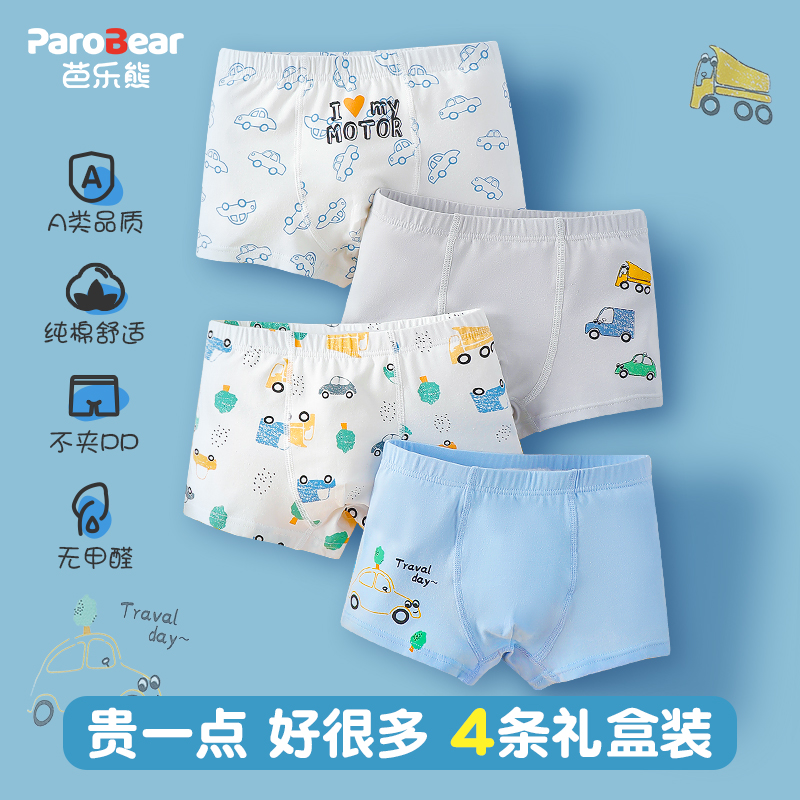 【产品名称:芭乐熊儿童内裤纯棉男童宝宝内裤男小童四角短裤女童四角平裤 A类】