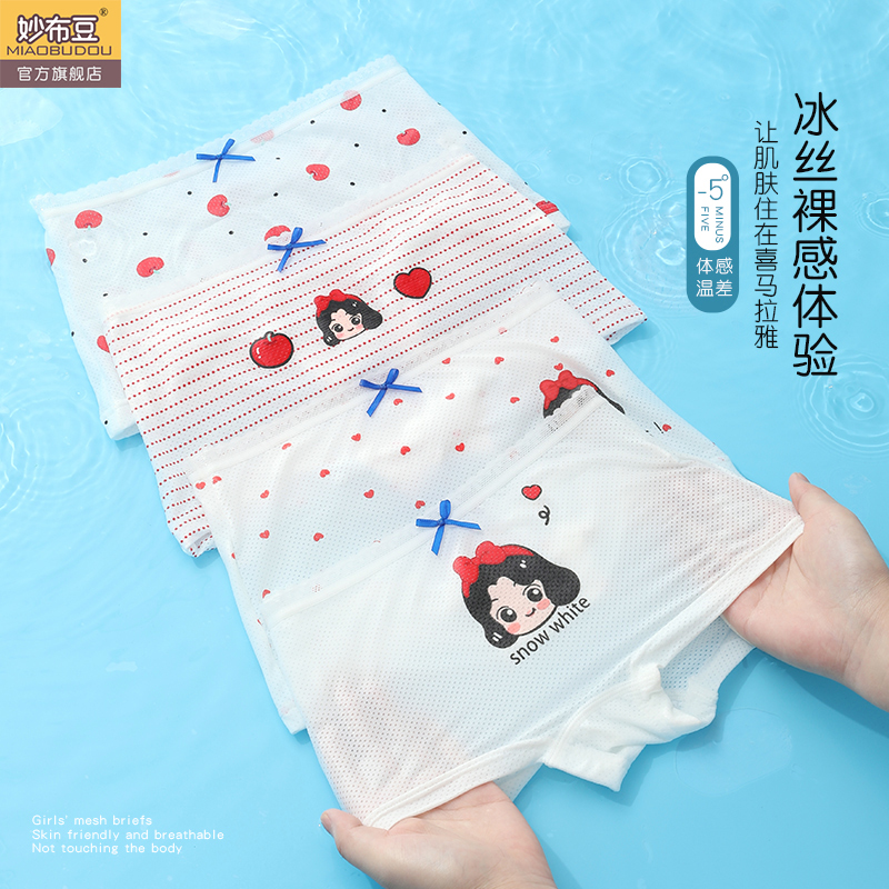 【产品名称:女童内裤夏季超薄款冰丝无痕平角裤儿童莫代尔透气网眼宝宝三角裤】
