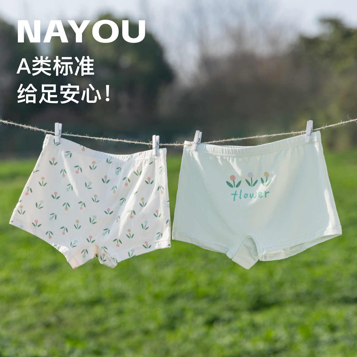 【产品名称:纳柚2023儿童内裤女童四角纯棉内裤中大童内裤女宝平角短裤不夹PP】