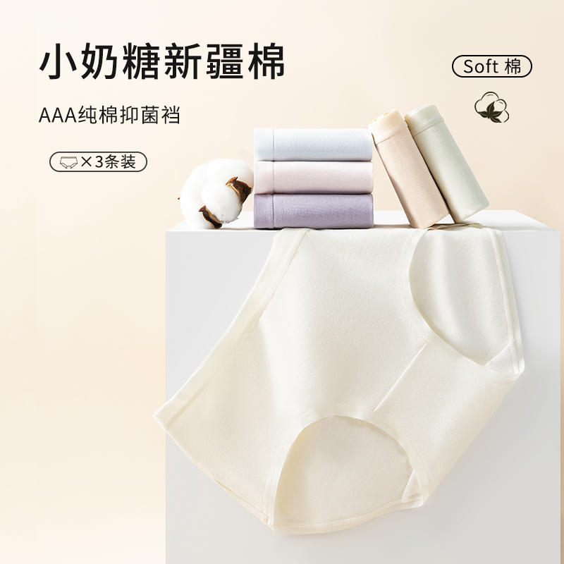 【产品名称:小奶糖【3条装】新疆棉内裤5A抗菌简约无痕少女纯色纯棉中腰三角】