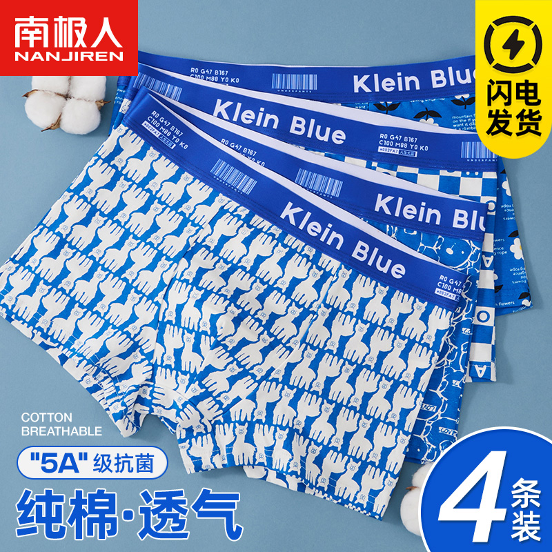 【产品名称:南极人纯棉抗菌男士内裤夏季薄款透气平角裤衩性感大码四角底裤头】