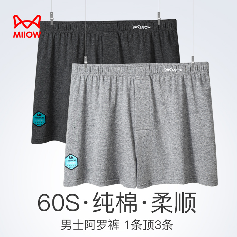 【产品名称:猫人阿罗裤男士内裤男宽松纯棉加肥加大码透气睡裤平角沙滩裤薄款】
