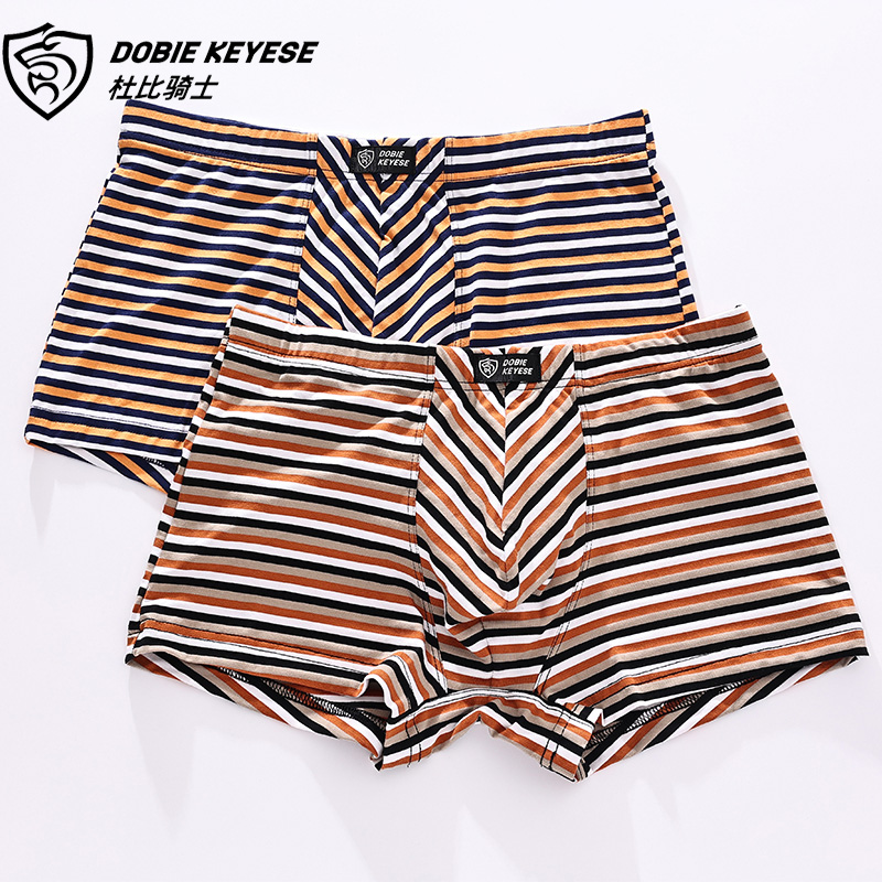 【产品名称:杜比骑士男士内裤全棉平角裤条纹运动简约大码宽松男生四角短裤头】