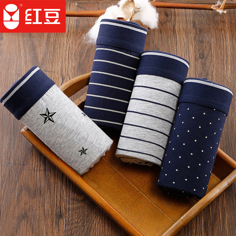 【产品名称:红豆男士内裤纯棉条纹青少年平角裤条纹高中生四角内裤2023年新款】