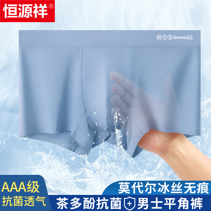 【产品名称:恒源祥男士内裤平角裤冰丝四角裤短裤头底裤男人修身无痕透气裤衩】