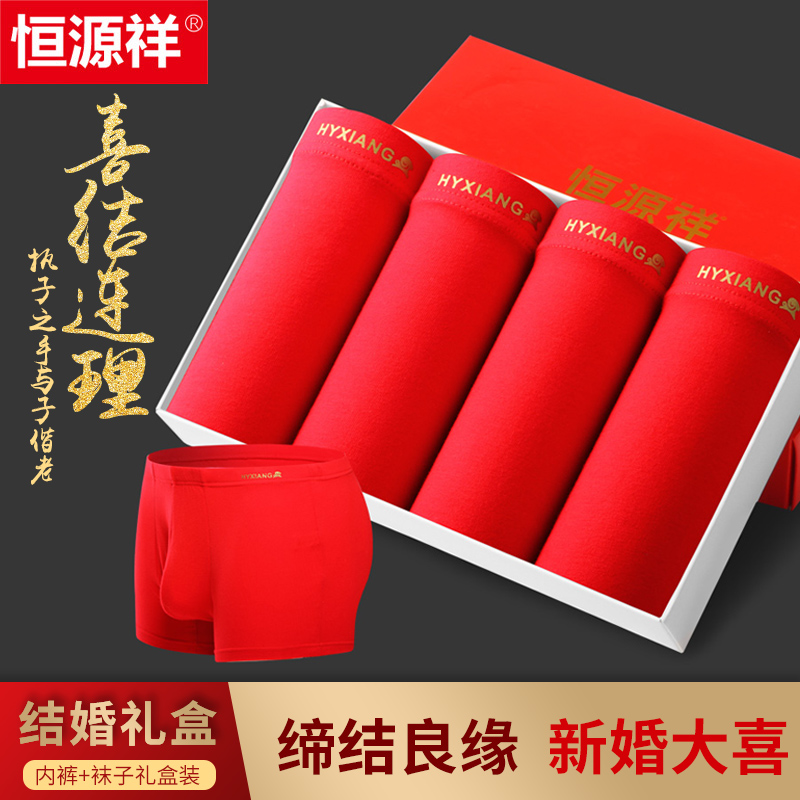 【产品名称:恒源祥男士内裤平角大红纯棉中腰四角裤本命年虎年结婚女情侣套装】