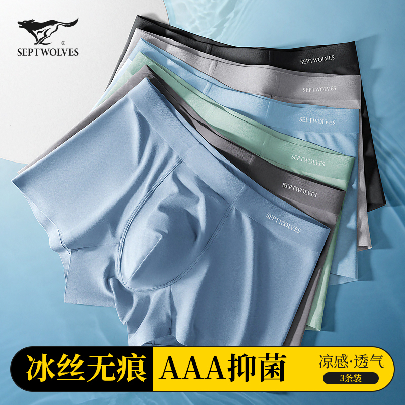【产品名称:七匹狼男士内裤2023新款冰丝无痕平角男生夏季薄款莫代尔四角短裤】