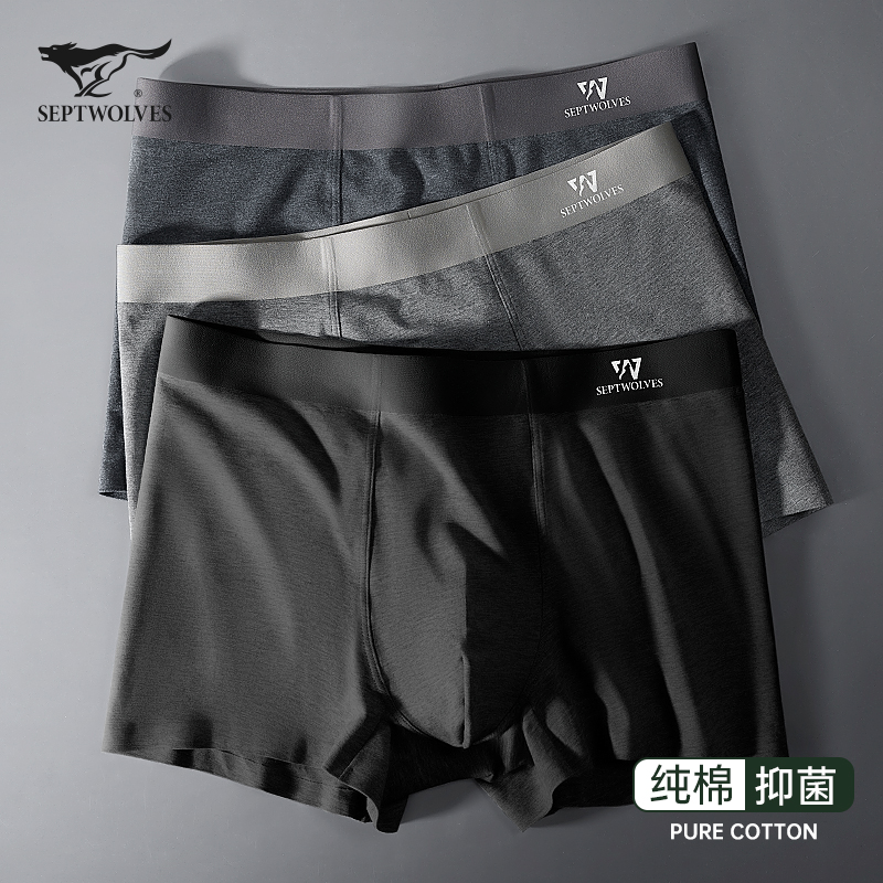 【产品名称:七匹狼男士内裤男生纯棉抗菌四角短裤头男款夏季全棉无痕平角裤衩】