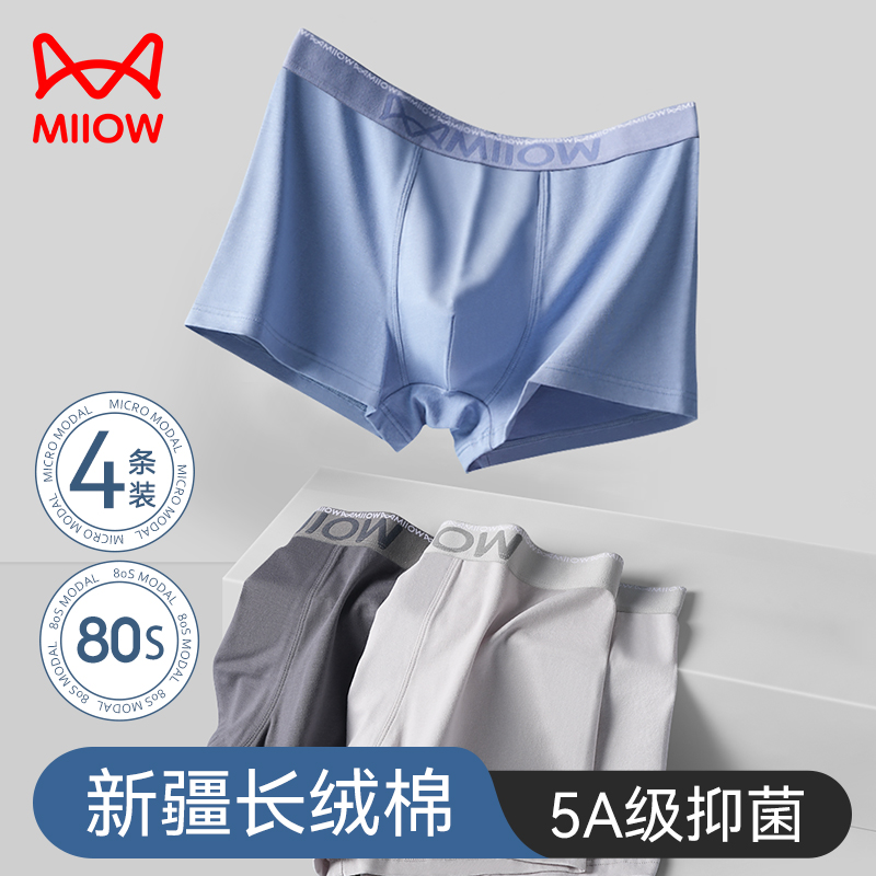 【产品名称:猫人男士内裤男生纯棉抗菌四角裤薄款运动透气青年男式平角短裤头】
