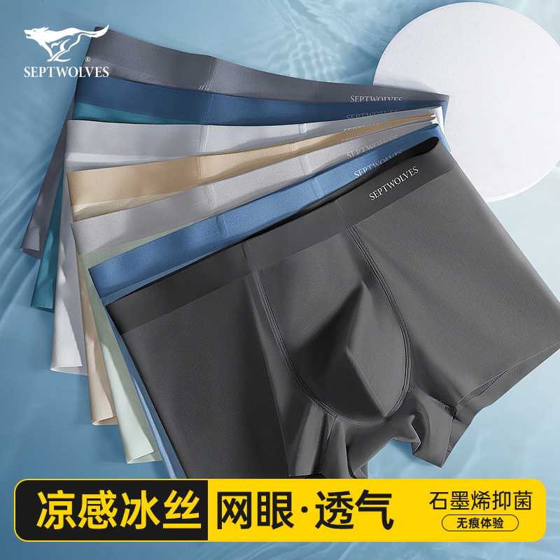 【产品名称:七匹狼男士内裤男生冰丝无痕平角夏季薄款男式纯棉抗菌四角短裤头】