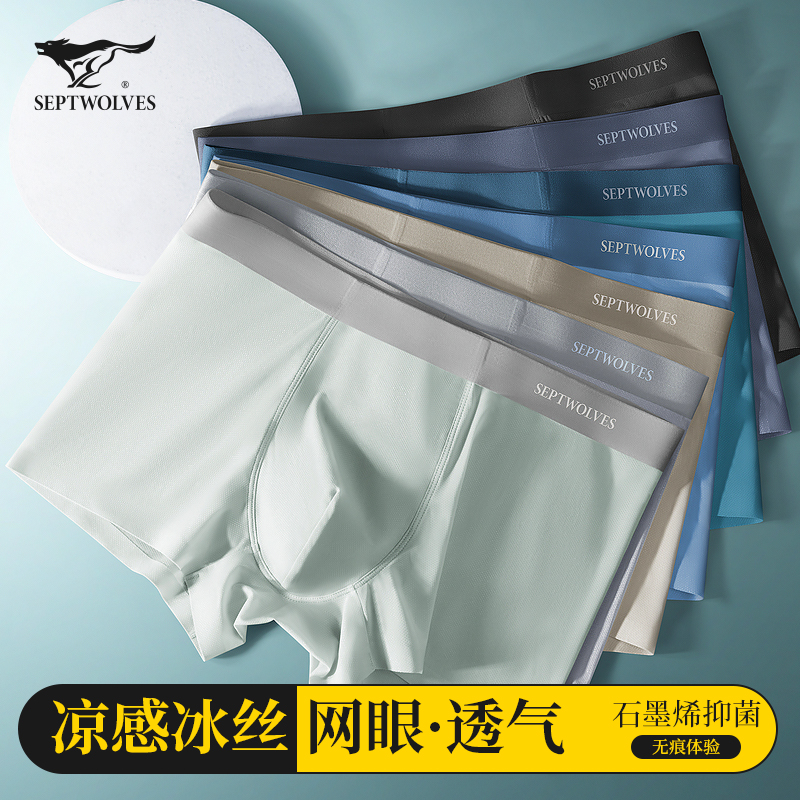 【产品名称:七匹狼冰丝男士内裤男生莫代尔无痕平角夏季薄款纯棉裆四角短裤头】