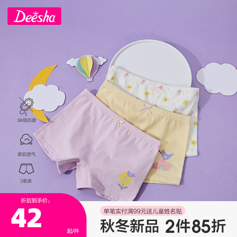 【产品名称:[3条装]deesha笛莎旗舰店女童平角内裤女孩儿童宝宝抑菌裤头裤衩】