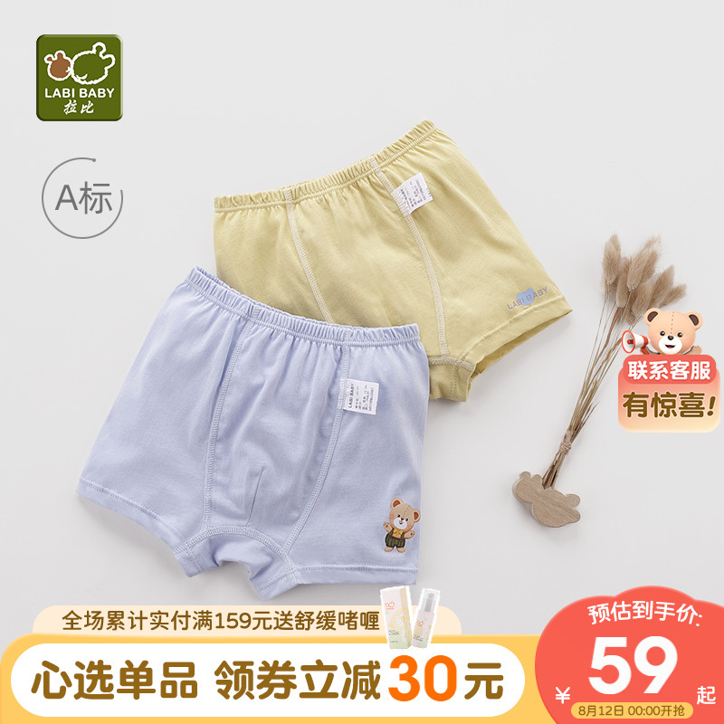 【产品名称:拉比官方旗舰儿童内裤男童四角内裤平角小男孩抑菌三角内裤2条装】