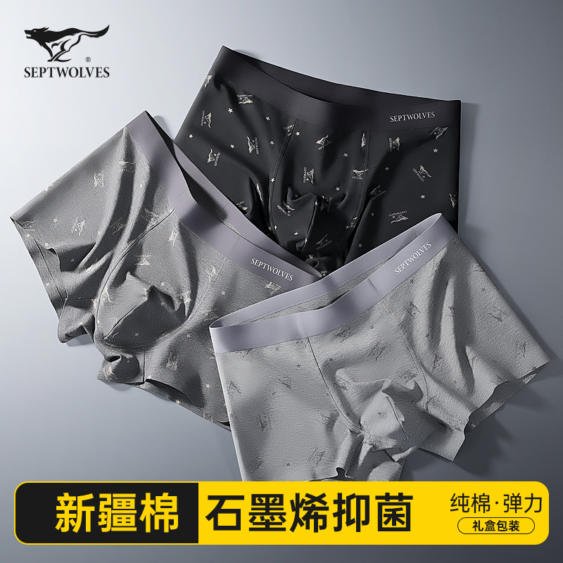 【产品名称:七匹狼男士内裤男生纯棉抗菌平角裤头男款夏季男式无痕四角短裤潮】