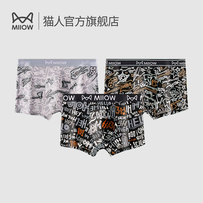 猫人潮牌男士内裤棉春夏潮流青年男生平角印花四角裤短裤字母纯棉