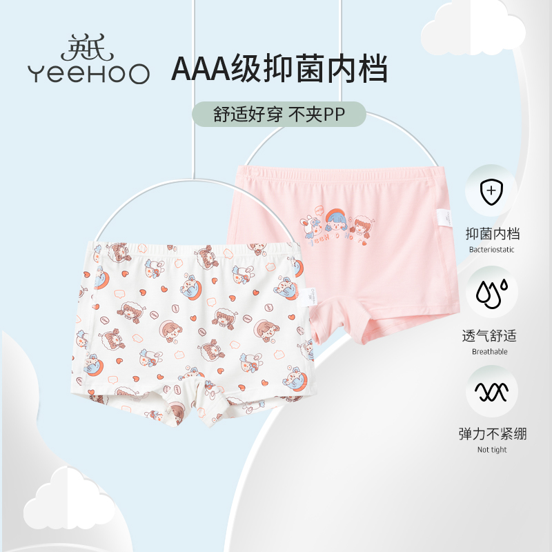 【产品名称:英氏AAA级抑菌女童内裤2条装萌趣女孩儿中大童平角不夹PP四角底裤】