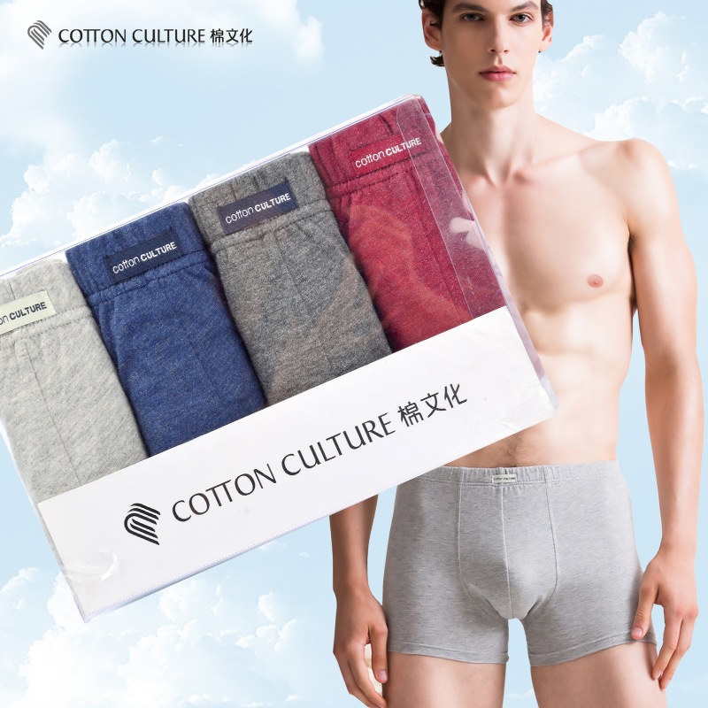 【产品名称:棉文化男士内裤100%纯棉新疆棉平角裤四角肥佬裤中腰透气薄抗菌】