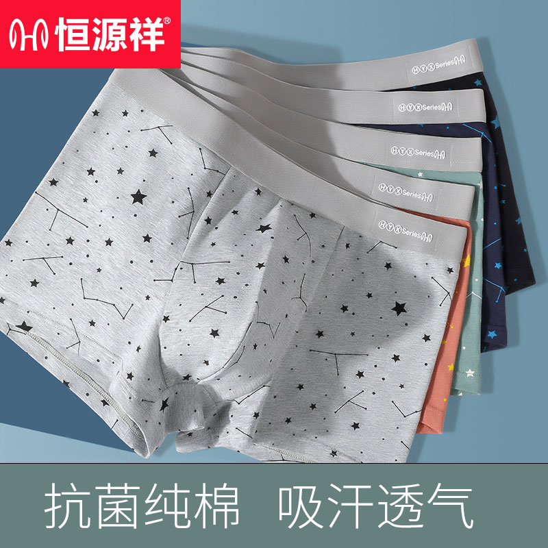 【产品名称:恒源祥恒源祥男士内裤平角裤四角裤夏季薄款短裤头裤衩透气吸汗潮】