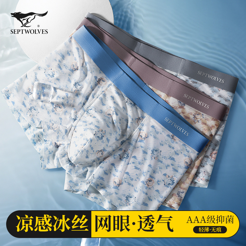 【产品名称:七匹狼冰丝男士内裤男生网孔透气无痕夏季薄款抗菌四角平角短裤头】