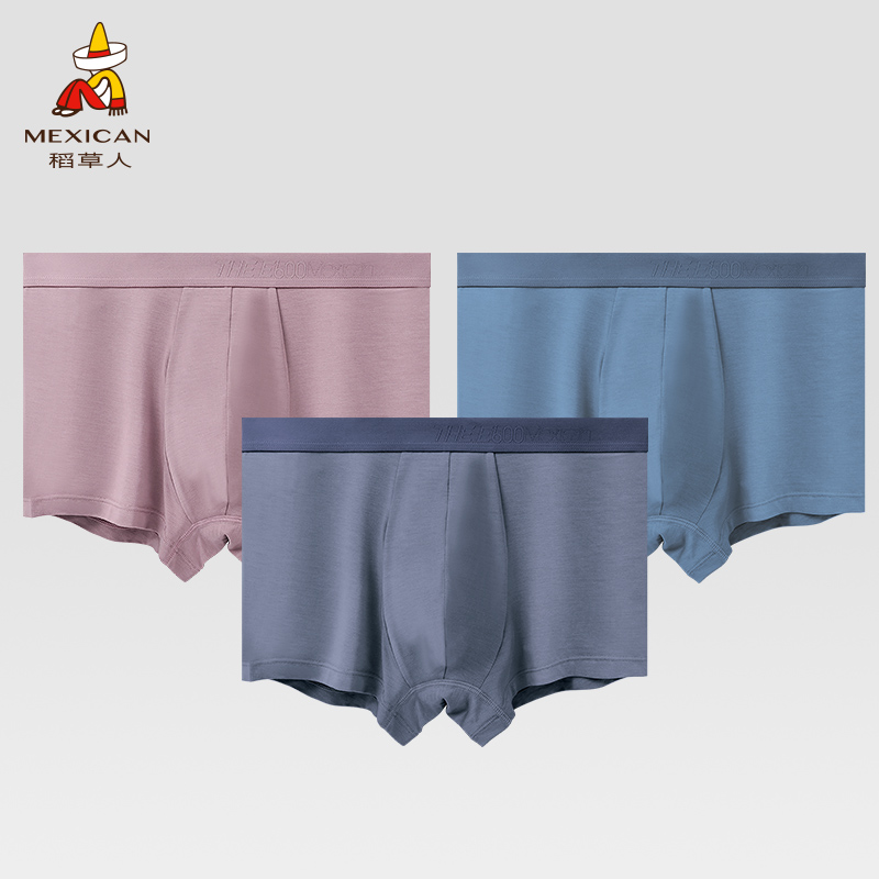 【产品名称:稻草人莫代尔棉男士内裤平角裤四角内裤男生透气裤衩夏季真丝蚕丝】