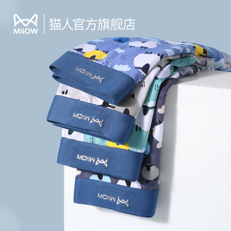 【产品名称:猫人80支新疆棉男士内裤印花青少年石墨烯抑菌平角裤头四角短裤衩】