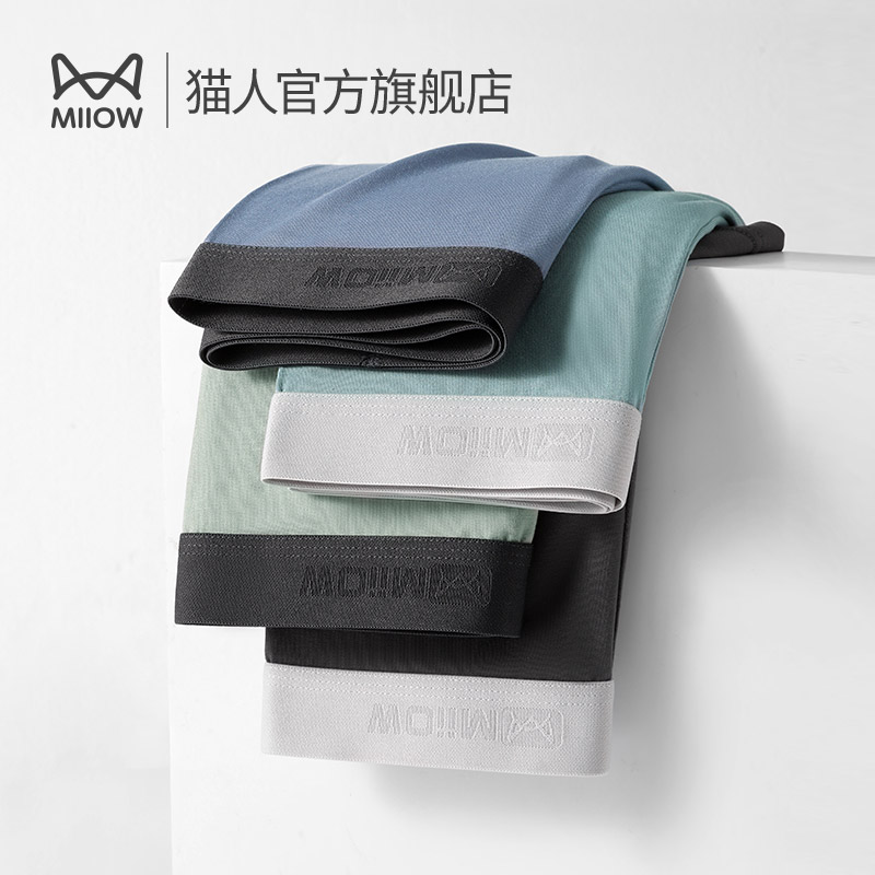 【产品名称:Y猫人80支莫代尔男士内裤四角蚕蛹蛋白抑菌透气防夹臀平角短裤4条】