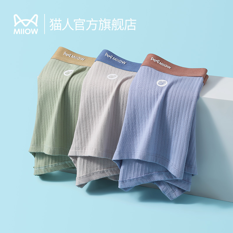 【产品名称:猫人男士内裤男生纯棉夏季薄款四角全棉大码运动透气平角短裤衩E1】