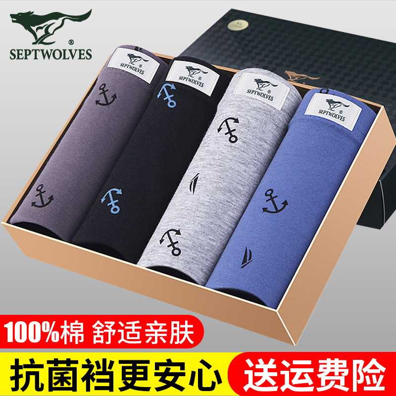 【产品名称:七匹狼男士内裤纯棉宽松透气平角全棉底裤四角裤本命年中腰短裤】