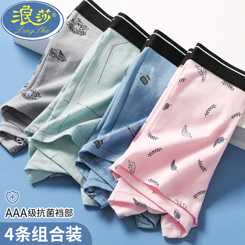 【产品名称:浪莎纯棉男士内裤U凸平角裤个性青年潮透气男生四角裤可爱短裤头】