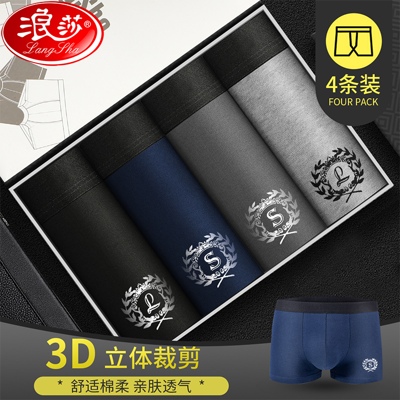 【产品名称:浪莎男士内裤男生纯棉裆平角裤夏季透气青年个性潮可爱四角短裤头】