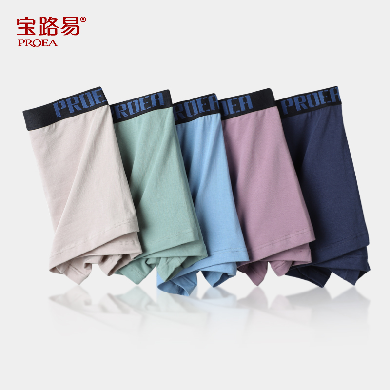 【产品名称:PROEA/宝路易23年新款男士内裤渔网纹筋净色高弹力棉平脚裤4条装】