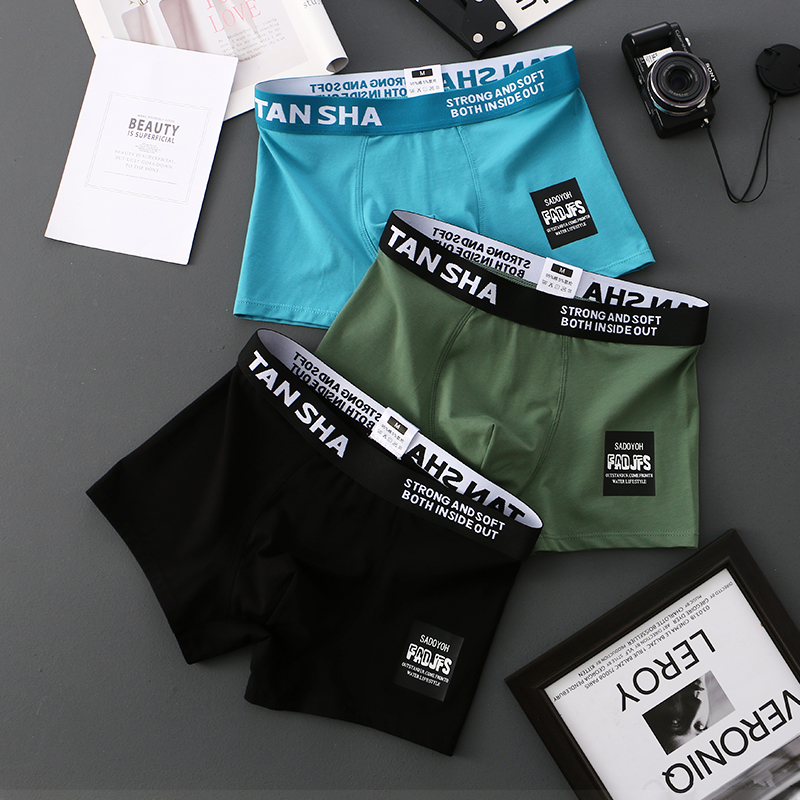 【产品名称:男士内裤男生纯棉全棉透气抗菌男款平角裤潮流青少年四角短裤裤头】